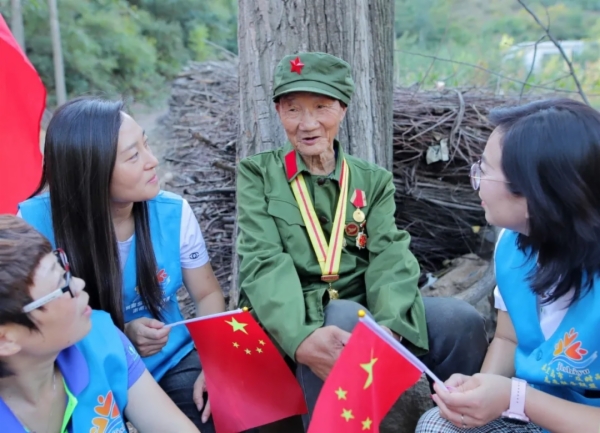 聊起組建志愿服務(wù)隊(duì)的初衷,牛月華說:“2017年,第一次跟隨志愿者參與慰問抗戰(zhàn)老兵活動(dòng),遇到一位無兒無女、生活困難的老人,身上還有抗戰(zhàn)時(shí)留下的傷,當(dāng)時(shí)覺得老人特別需要關(guān)愛和照顧。”志愿服務(wù)的種子就此在牛月華的心中種下,她覺得如果有更多的人關(guān)注這些抗戰(zhàn)老兵,老人的生活肯定會(huì)更好一點(diǎn)。就這樣,同年6月,牛月華帶著自己的員工和身邊的愛心人士組建了第五大道文化藝術(shù)志愿服務(wù)隊(duì)。關(guān)愛老兵、志愿助殘、愛心攝影都是志愿服務(wù)隊(duì)重要的志愿服務(wù)行動(dòng),如今,牛月華已經(jīng)數(shù)不清他們走過多少村莊和小區(qū),幫助了多少需要幫助的人。