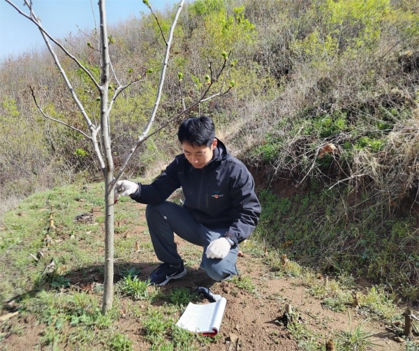 李月學(xué)習(xí)山楂樹剪枝技術(shù)。