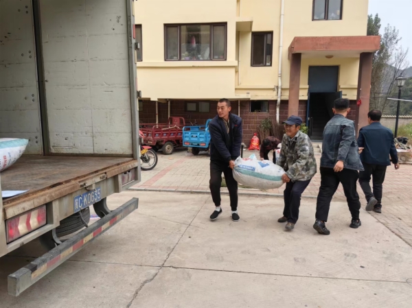 出頭石村1300斤板栗被搬上車,運往百峰公司。——柴存杰攝