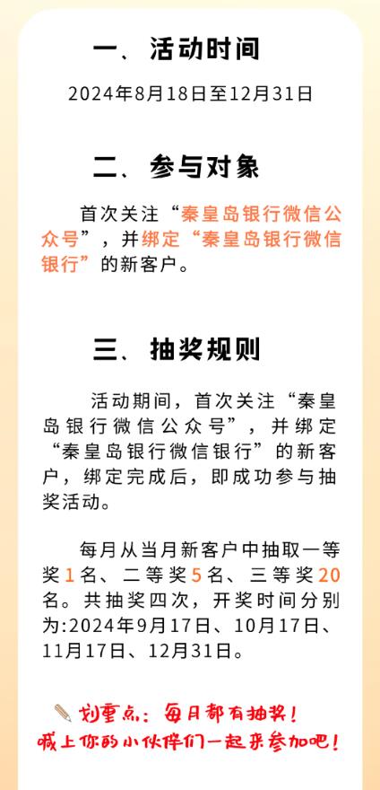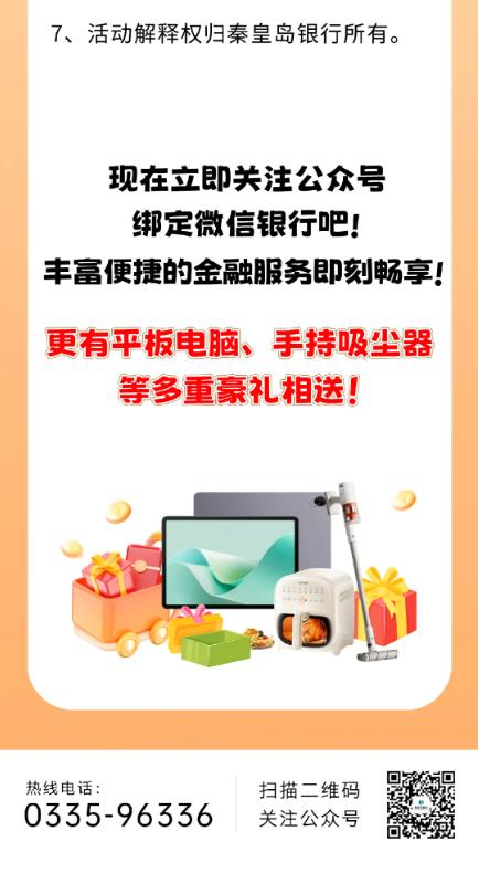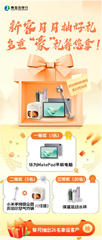 秦皇島銀行新客月月抽好禮,華為平板電腦等“豪”禮帶回家!