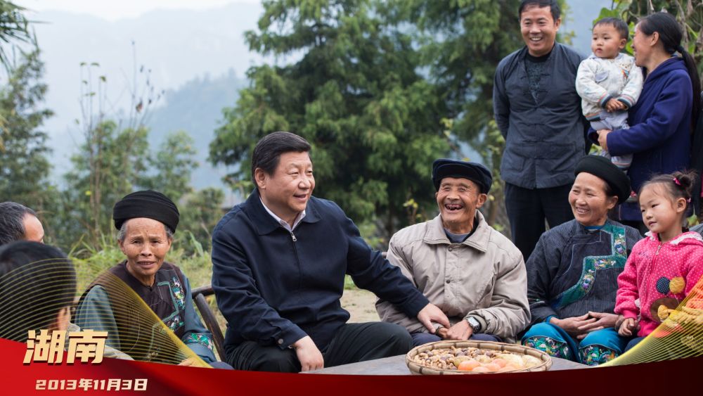 2013年11月3日,習(xí)近平來到湖南省湘西土家族苗族自治州花垣縣十八洞村。在苗族貧困村民施齊文家中看望時(shí),習(xí)近平坐下來同一家人算收支賬,詢問有什么困難、有什么打算,勉勵(lì)一家人用勤勞和智慧創(chuàng)造美好生活。隨后,習(xí)近平同村干部和村民代表圍坐在一起,親切地拉家常、話發(fā)展,聽村民們談變化、講困難、道實(shí)情。