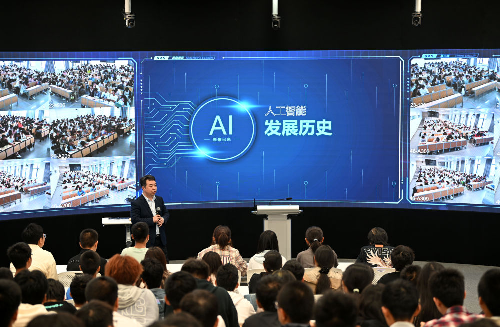 2024年9月20日,天津大學(xué)人工智能學(xué)院胡清華教授在授課。天津大學(xué)在2024年秋季學(xué)期推出《人工智能導(dǎo)論》課程,由8位人工智能及交叉學(xué)科領(lǐng)域的教授共同打造,同時配備30名來自智算學(xué)部、精儀學(xué)院、自動化學(xué)院、理學(xué)院等13個學(xué)院的專業(yè)教師,面向全體本科生進行授課。