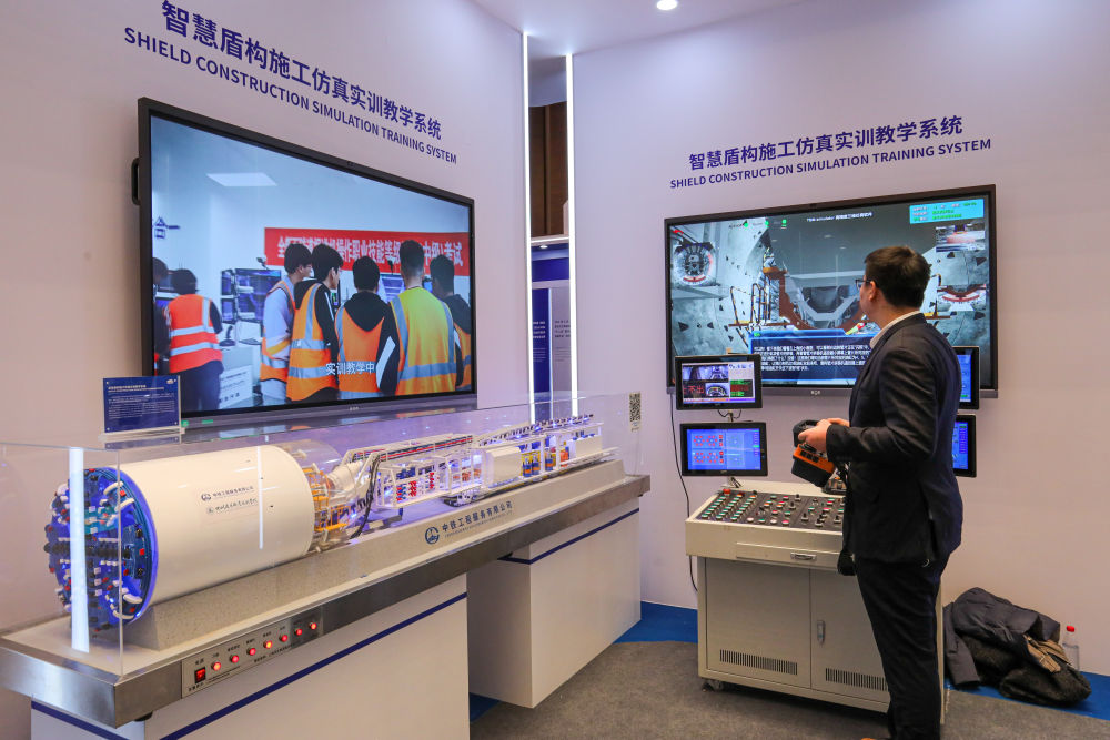2024年1月30日,工作人員在上海舉辦的“數(shù)智未來”教育展上演示智慧盾構(gòu)施工仿真實訓(xùn)教學(xué)系統(tǒng)。2024世界數(shù)字教育大會以“數(shù)字教育:應(yīng)用、共享、創(chuàng)新”為主題,圍繞教師數(shù)字素養(yǎng)與勝任力提升、數(shù)字化與學(xué)習(xí)型社會建設(shè)、數(shù)字教育評價、人工智能與數(shù)字倫理、數(shù)字變革對基礎(chǔ)教育的挑戰(zhàn)與機遇、教育治理數(shù)字化與數(shù)字教育治理等議題展開討論。
