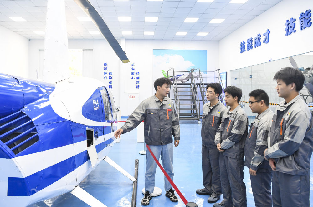 2024年9月25日,重慶城市職業(yè)學(xué)院航空學(xué)院教師(左一)在為學(xué)生們講解直升機繞機檢查的注意事項。近年來,重慶市永川區(qū)依托現(xiàn)代制造業(yè)基地和西部職教基地優(yōu)勢,推動低空產(chǎn)業(yè)領(lǐng)域的校企合作、產(chǎn)教融合,布局發(fā)展低空制造、低空管理、低空應(yīng)用等低空經(jīng)濟產(chǎn)業(yè),助推經(jīng)濟高質(zhì)量發(fā)展。