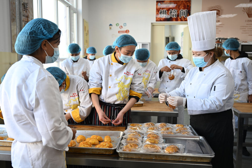 2024年12月17日,青海省海南藏族自治州職業(yè)技術(shù)學(xué)校烹飪專業(yè)教師黃雪妍(前右)在指導(dǎo)學(xué)生學(xué)習(xí)西點烘焙。近年來,青海省海南藏族自治州加大職業(yè)技術(shù)人才培養(yǎng)力度,開設(shè)藏醫(yī)藥、汽車維修、烹飪等專業(yè),通過推進學(xué)校與企業(yè)聯(lián)合辦學(xué),創(chuàng)新校企合作、定向培養(yǎng)等辦學(xué)模式,拓寬職業(yè)教育畢業(yè)生就業(yè)渠道。