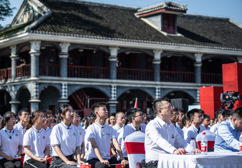 2021年5月14日,在貴州省遵義市遵義會議紀念館廣場,貴州醫(yī)科大學(xué)師生代表參加“賡續(xù)百年紅色基因,傳承守護健康血脈”——“四地同上一堂黨史課”活動。
