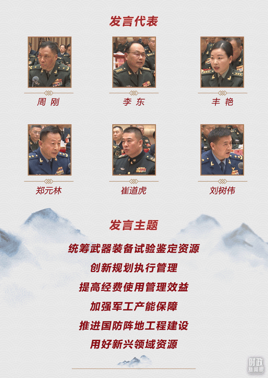 當(dāng)天,解放軍和武警部隊(duì)代表團(tuán)6位代表在會(huì)上先后發(fā)言,分別就統(tǒng)籌武器裝備試驗(yàn)鑒定資源、創(chuàng)新規(guī)劃執(zhí)行管理、提高經(jīng)費(fèi)使用管理效益、加強(qiáng)軍工產(chǎn)能保障、推進(jìn)國(guó)防陣地工程建設(shè)、用好新興領(lǐng)域資源等提出意見建議。