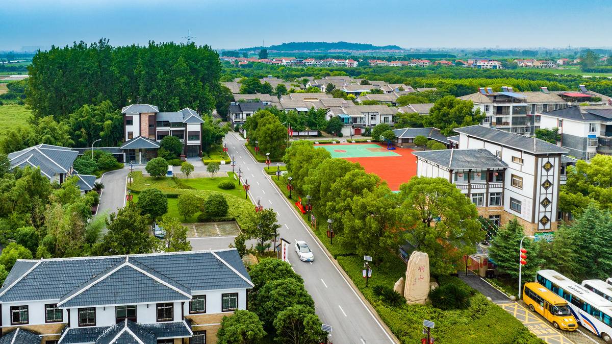 鳥瞰鄂州市峒山村,村容整潔、綠樹成蔭。(湖北日報(bào)全媒記者 薛婷 攝)