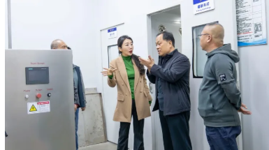 王舵(左一)向秦皇島市外事和商務(wù)局工作人員介紹工坊精釀啤酒釀造環(huán)節(jié)。