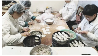 趙家館的工作人員正在包餃子。 (本版圖片由被采訪者提供)