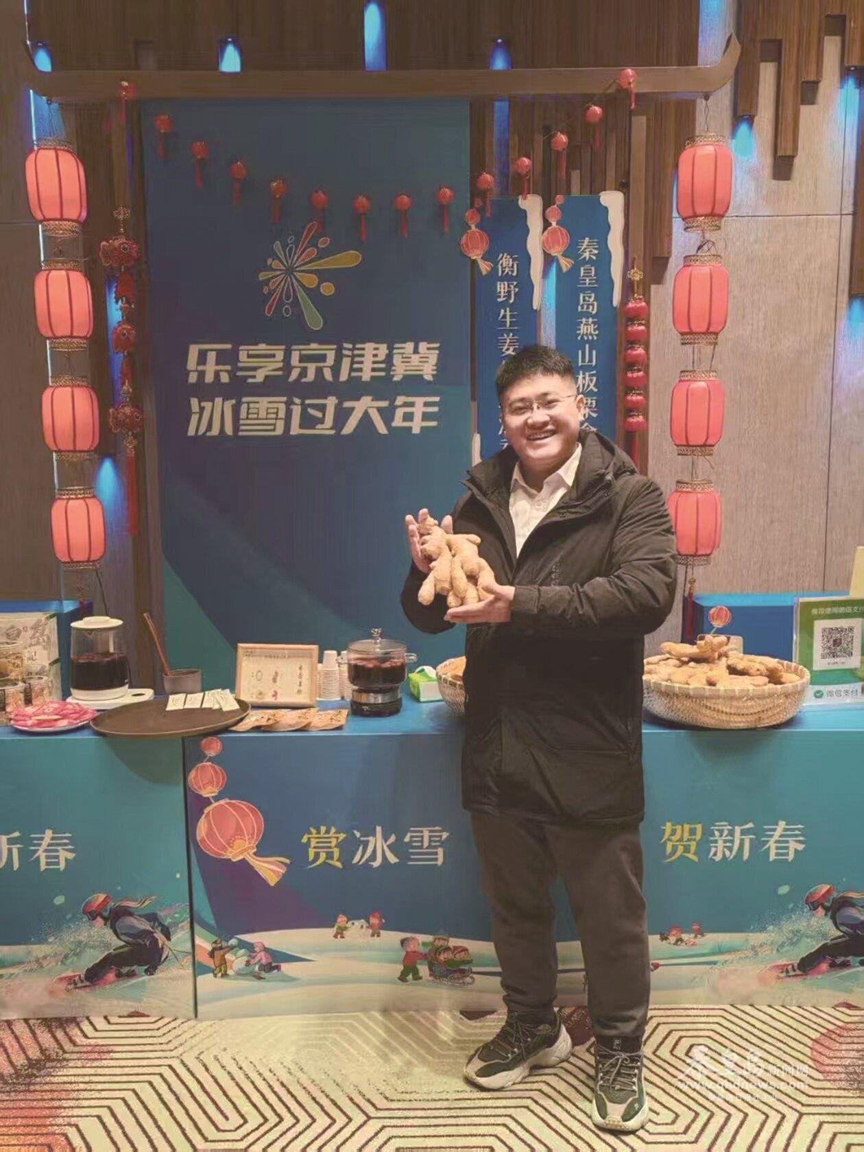 王野在“樂享京津冀·冰雪過大年”活動上展示姜產(chǎn)品。