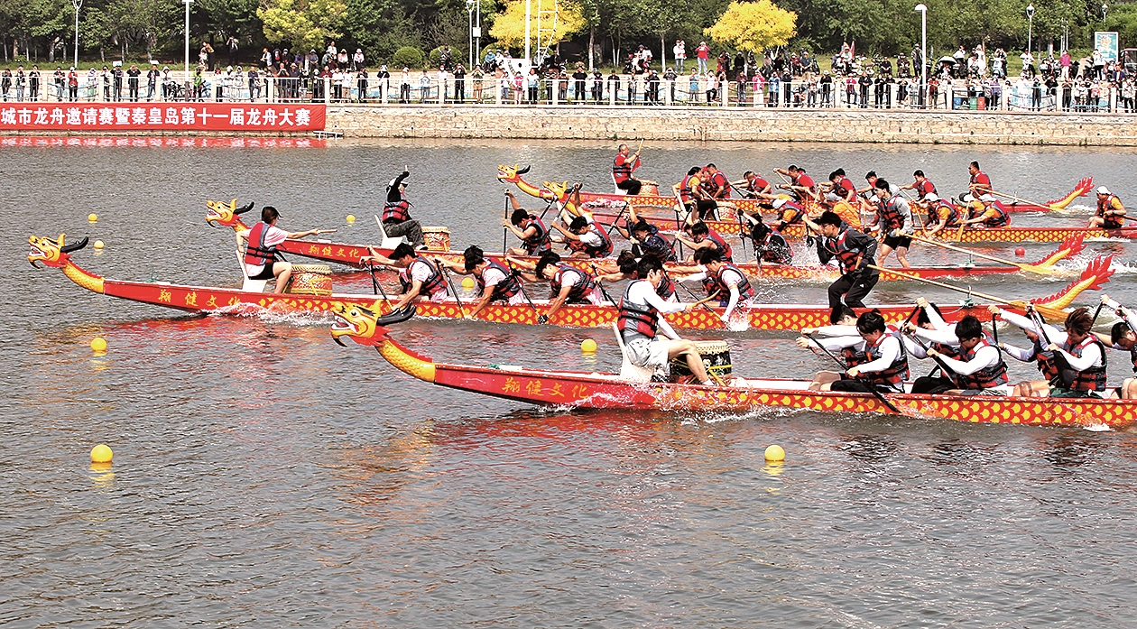 5月29日,選手們?cè)诤8蹍^(qū)湯河進(jìn)行龍舟比賽。當(dāng)日,由市體育局、海港區(qū)委、海港區(qū)政府主辦的“京津冀環(huán)渤海灣”七城市龍舟邀請(qǐng)賽暨秦皇島第十一屆龍舟大賽在海港區(qū)湯河開賽。比賽設(shè)區(qū)直組、院校組、鎮(zhèn)街組、邀請(qǐng)組4個(gè)組別,競(jìng)賽項(xiàng)目為12人龍舟100米、200米兩項(xiàng)。賽事吸引來自北京、天津、石家莊、錦州、秦皇島等地的27支隊(duì)伍、400余名運(yùn)動(dòng)員參加。賽事當(dāng)天還舉辦了端午節(jié)文化民俗展。