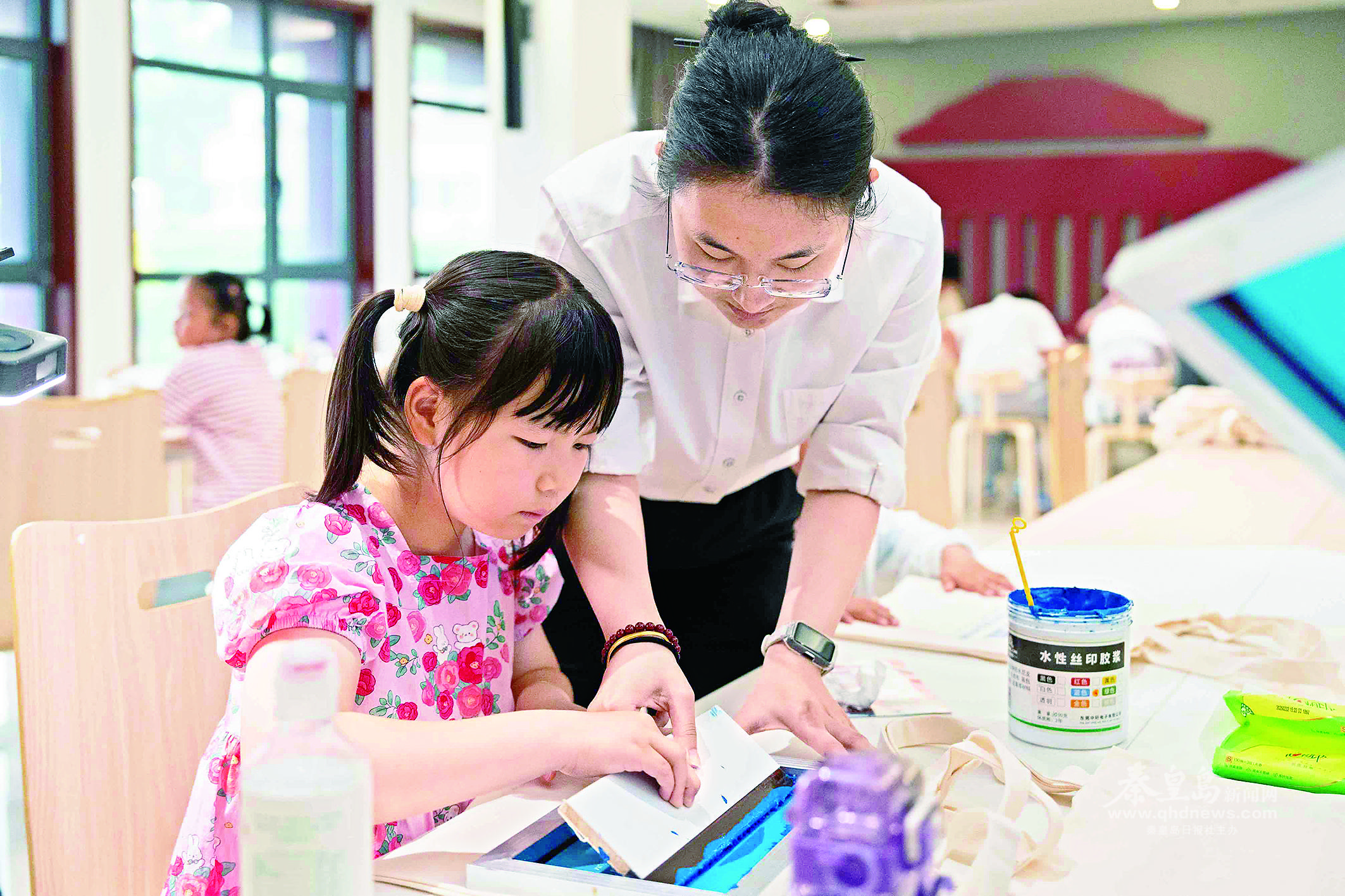 小朋友親手體驗瓦當(dāng)?shù)耐赜〖妓嚒?本報通訊員 王梓擎 攝