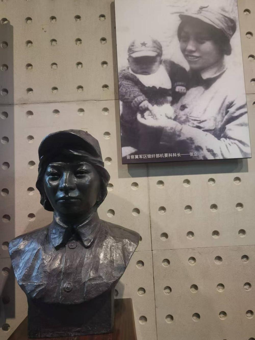“這位是偉大的母親張立,她是晉察冀軍區(qū)鋤奸部機(jī)要科科長。在阜平的‘柏崖慘案’中,她不幸落入敵人手中,面對日軍的嚴(yán)刑拷打,她寧死不屈,日軍將她不滿三個(gè)月大的小兒子扔進(jìn)滾燙的開水鍋中,活活煮死。張立也被砍掉一只右臂后,被用刺刀挑死,犧牲時(shí)年僅23歲?!睂O旗綺動情地向參觀者介紹。