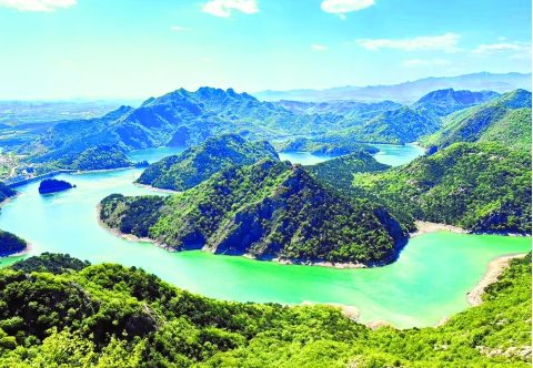 在角山長(zhǎng)城上俯瞰“小天池”燕塞湖。