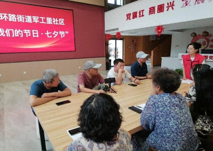 軍工里社區(qū)工作人員為居民們講解七夕節(jié)的由來(lái)和習(xí)俗。