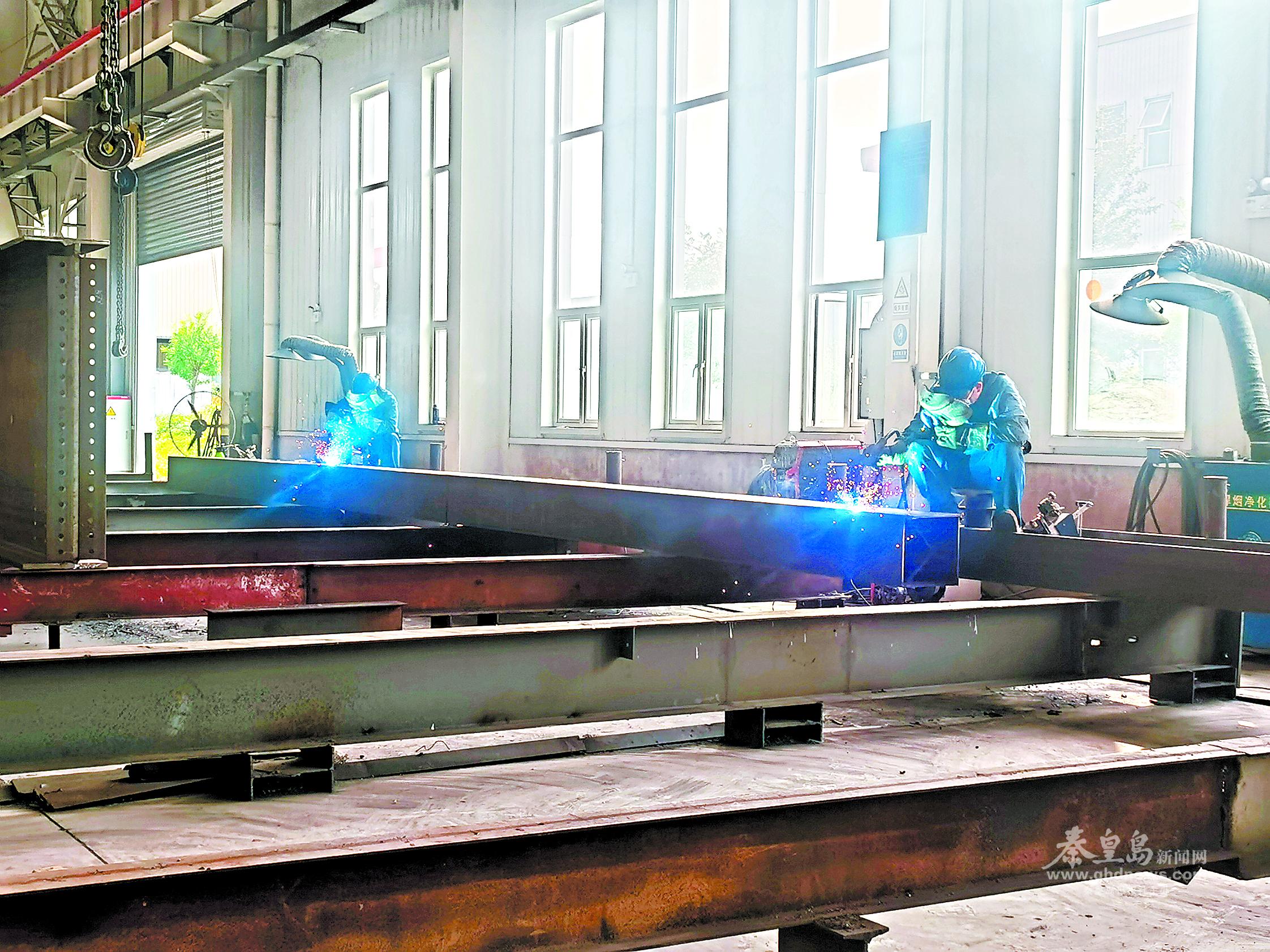 在秦皇島永禎鋼結(jié)構(gòu)制造有限公司重鋼車間,工人正在緊張忙碌著。通訊員 劉麗鳳 攝
