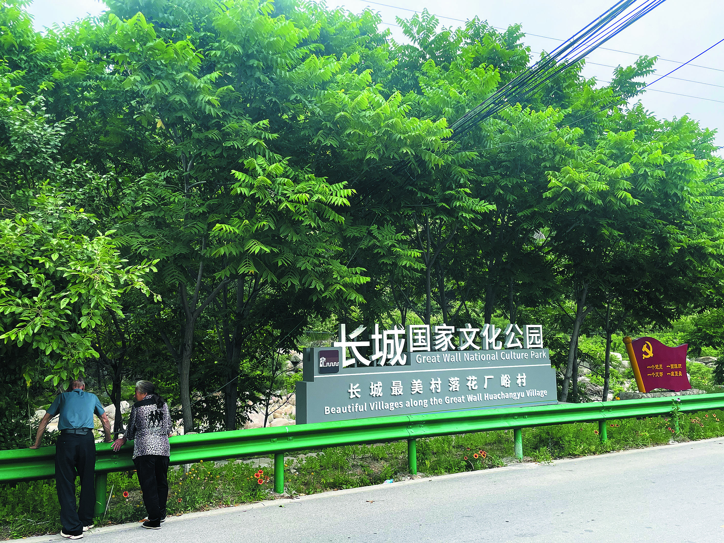 村民駐足在“長(zhǎng)城最美村落花廠峪村”牌匾旁。