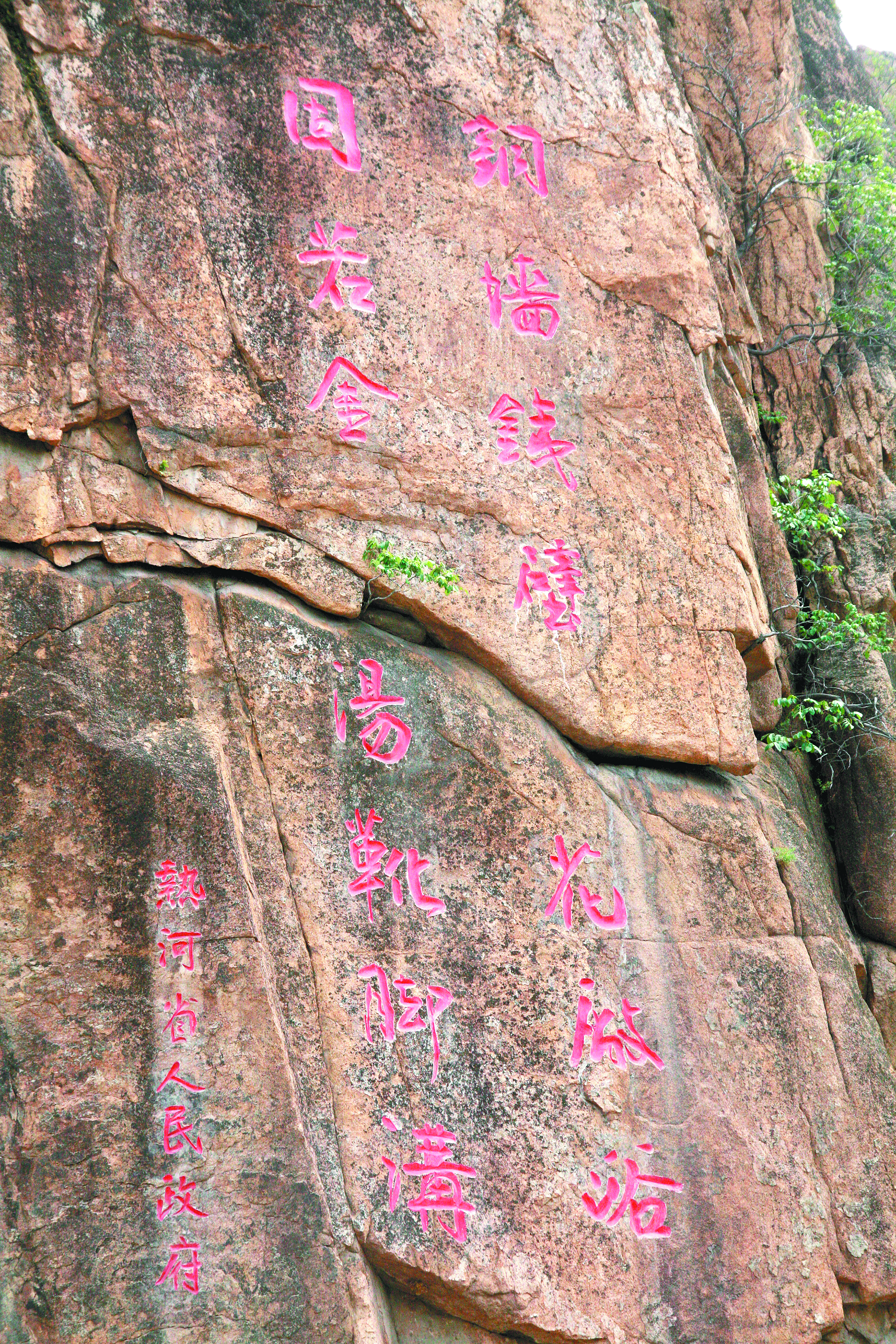 刻在巖壁上的“銅墻鐵壁花廠峪,固若金湯靴腳溝”。