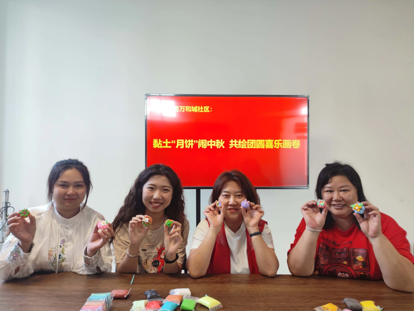 萬和城社區(qū)制作黏土月餅,趣味十足。