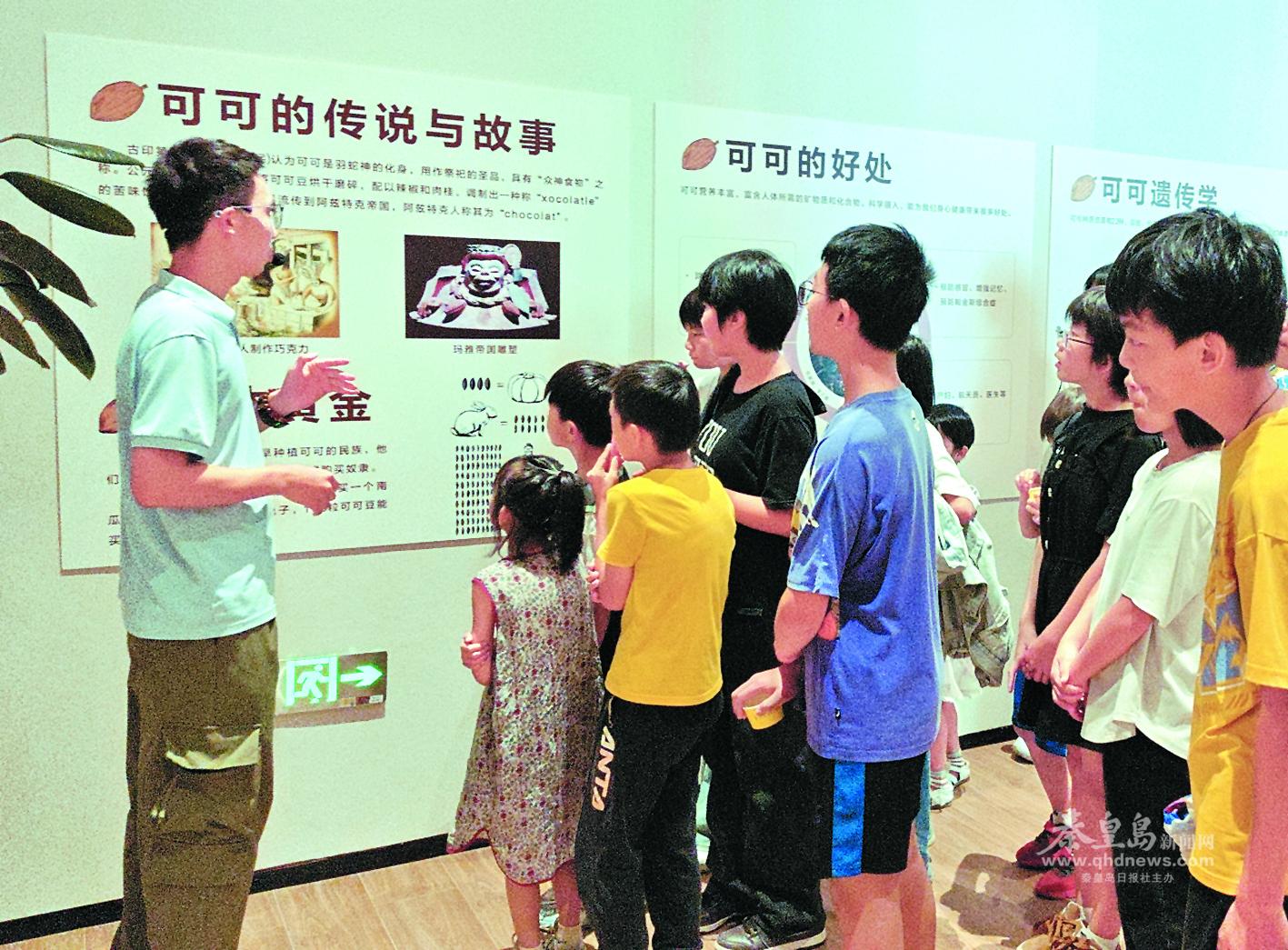 研學(xué)團(tuán)的孩子們?cè)诒刹┪镳^聽講解老師介紹熱帶植物。 記者 陳立桐 攝