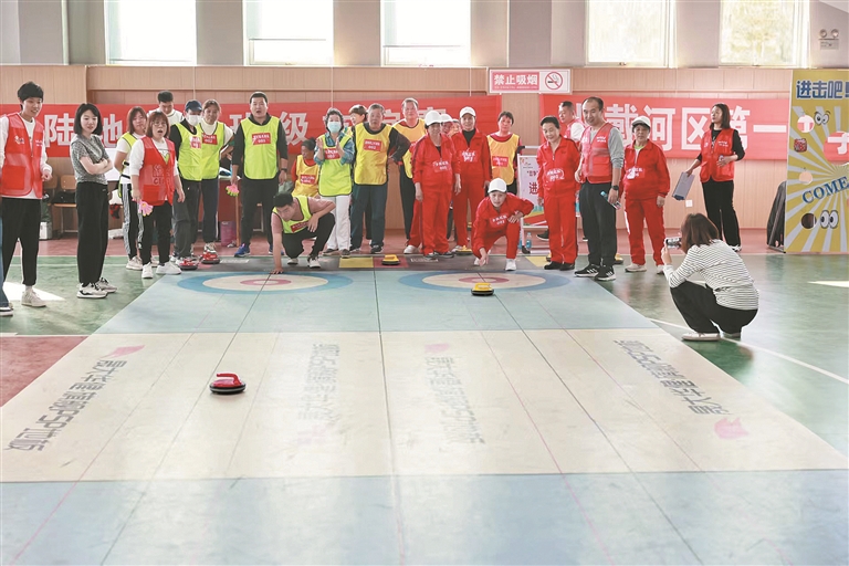 北戴河區(qū)“社區(qū)趣味運(yùn)動(dòng)會(huì)”上,居民參加冰壺比賽。通訊員 吳宇濤 攝