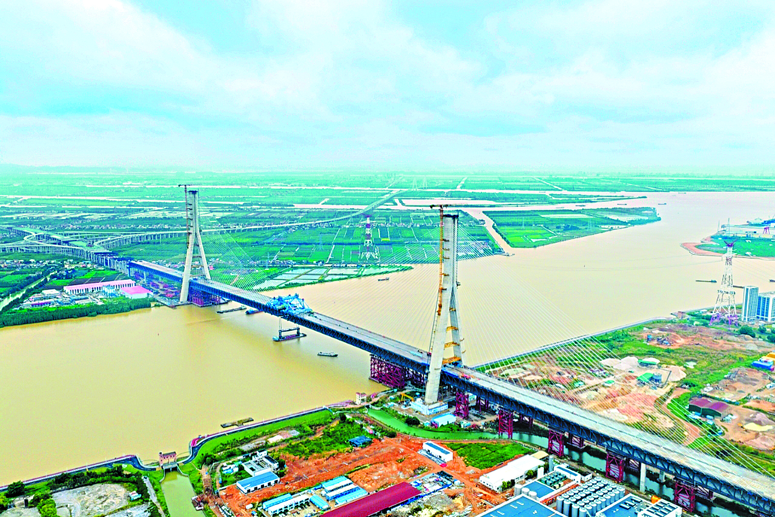 虹橋飛渡珠江口 中鐵山橋參建世界橋面最寬跨徑最大雙層鋼桁架公路斜拉橋合龍