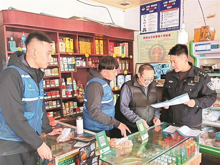 赤洋口海防派出所民警與“生態(tài)義警”到七里海潟湖濕地周邊村莊、商鋪開展普法宣傳。通訊員 王星博 攝
