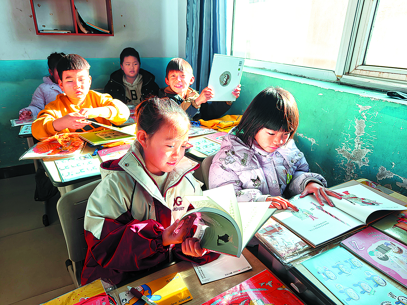 馬圈子小學(xué)的學(xué)生們?cè)陂喿x星囊中的圖書(shū)。 通訊員 張靜 攝