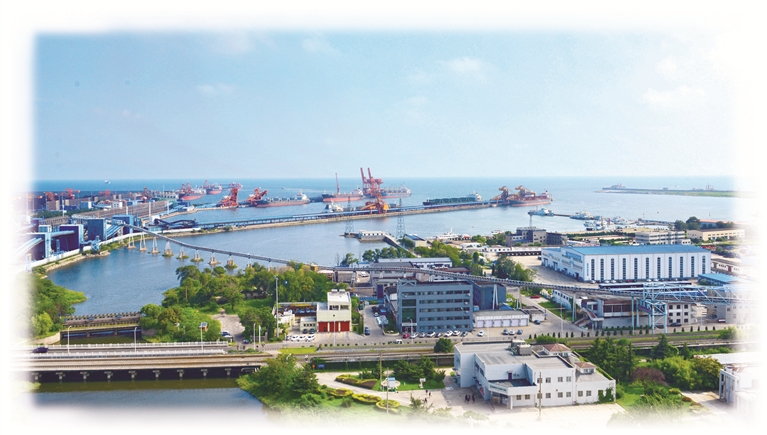 河港物資秦皇島中心倉全景。碼頭、貨船與運(yùn)輸設(shè)施展現(xiàn)了倉儲與港口物流的聯(lián)動布局。