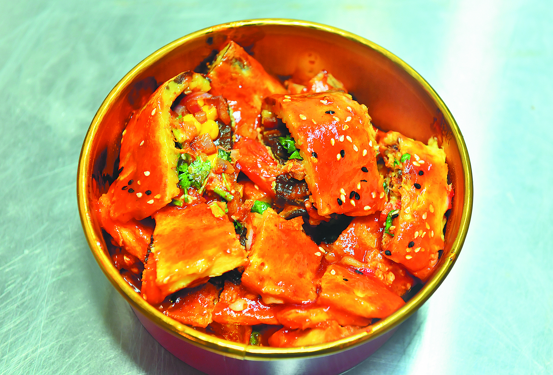 剛出鍋的“秦皇島烤冷面”,色澤誘人香氣四溢。