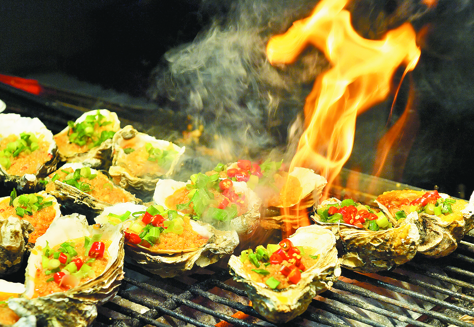 鐵板上的潮汕蠔烙滋滋作響,令人垂涎欲滴。