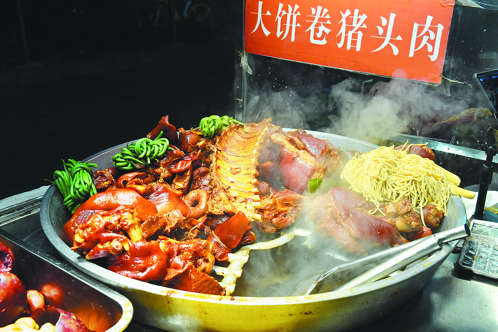 肉蛋堡是另一道深受游客喜愛(ài)的傳統(tǒng)小吃。在泰山路夜市有一家肉蛋堡攤,他家肉蛋堡不僅用料實(shí)惠,還有多種秘制醬料可供選擇,能滿足不同人群的口味需求。簡(jiǎn)單的肉、蛋、面等食材就能組成不簡(jiǎn)單的美味“三重奏”,外酥里嫩,讓人回味無(wú)窮。