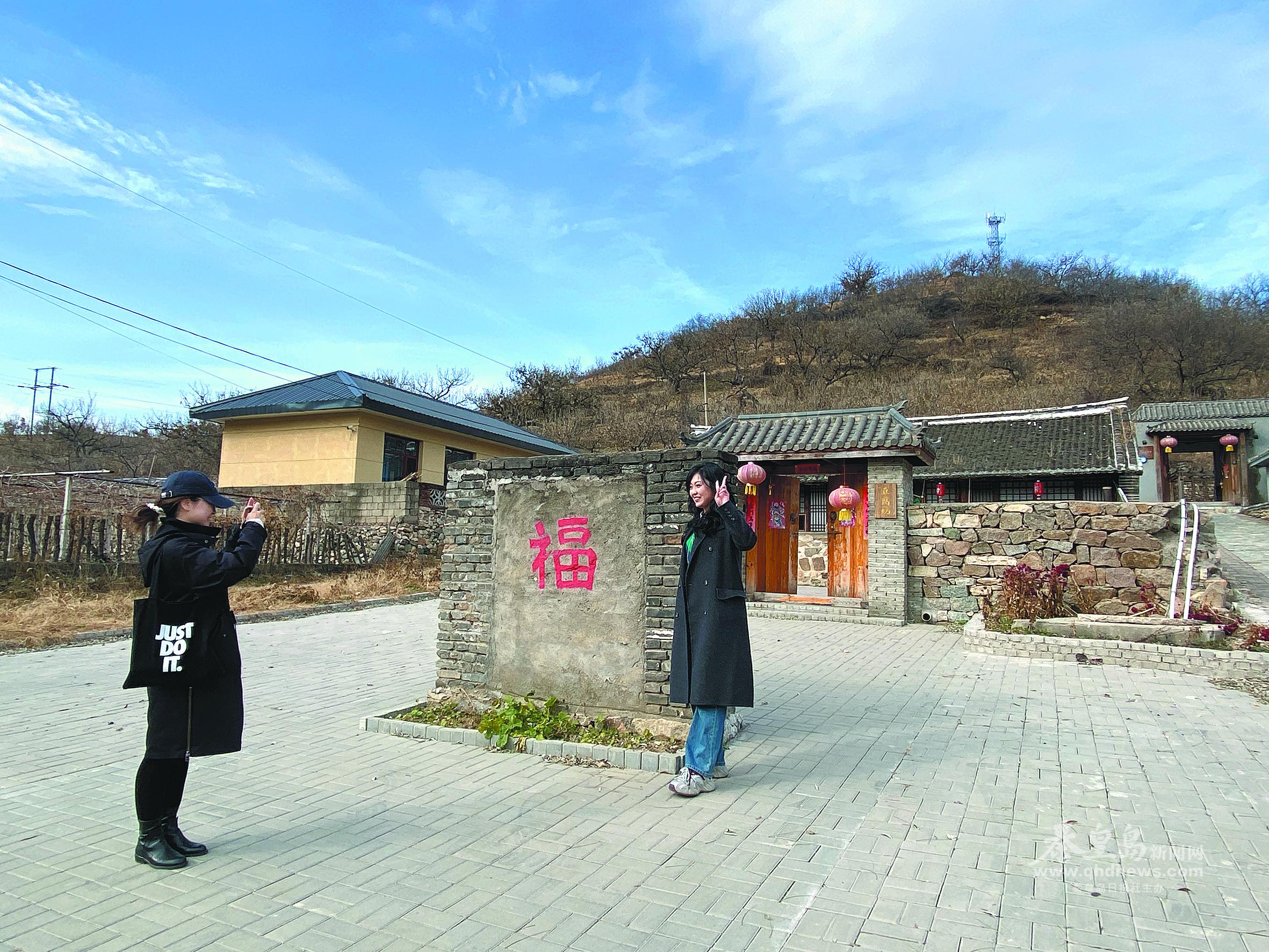 游客在農(nóng)家小院前打卡拍照。