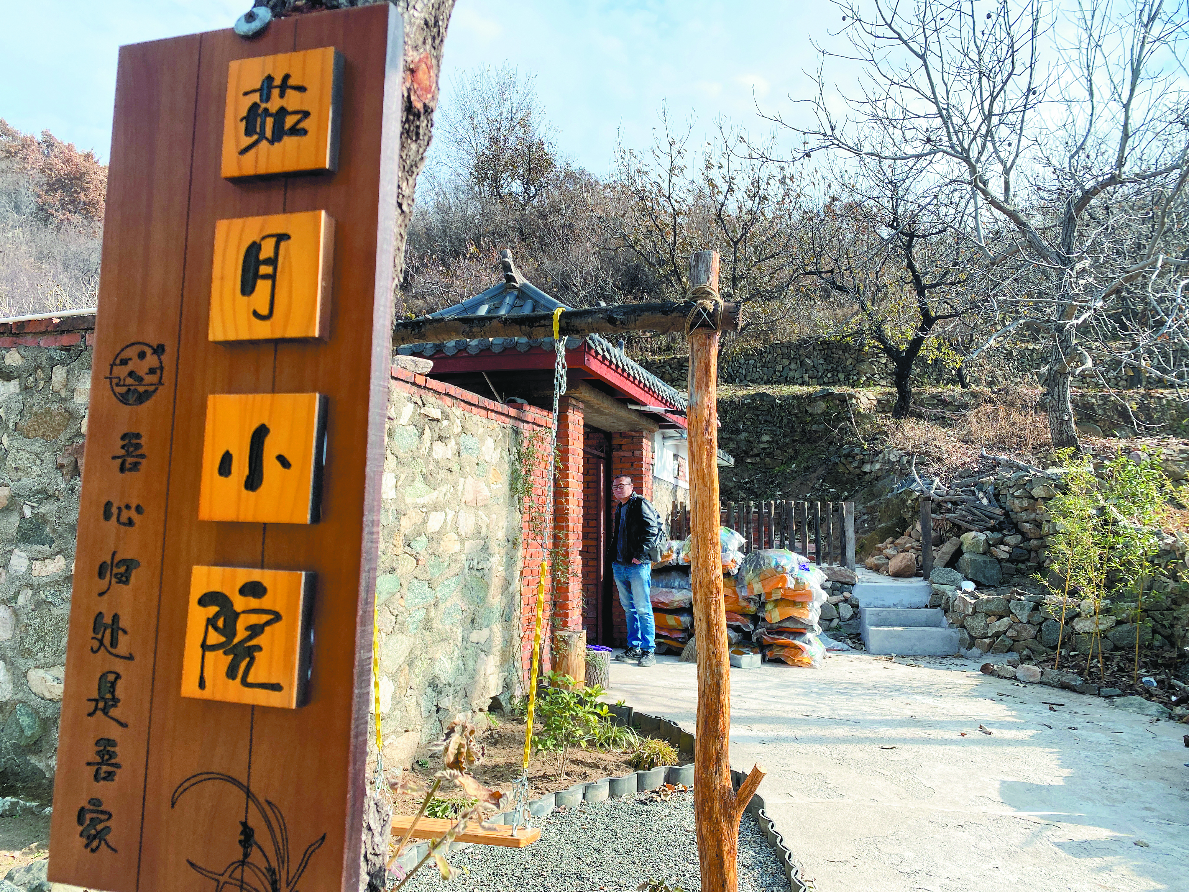 “我家那口子也從東北過(guò)來(lái)了,隨我一起在這兒定居?!薄肮鸹ń恪痹谛≡簝?nèi)掛了一幅字——“我在等風(fēng),也等你?!边@不僅是“茹月小院”的迎客語(yǔ),更訴說(shuō)著一位“新村民”的生活理想。