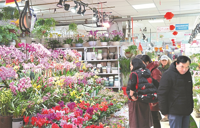 洋洋花卉購(gòu)物中心總經(jīng)理劉明告訴記者,為讓市民一站式購(gòu)齊年貨,今年市場(chǎng)不僅在花卉品類(lèi)上做足儲(chǔ)備,還特意策劃了“年貨大集”。紅彤彤的福字、春聯(lián),喜慶的燈籠,精巧的手工鋁線(xiàn)工藝品、布藝裝飾……各式節(jié)慶商品琳瑯滿(mǎn)目,滿(mǎn)足大家多樣化的采購(gòu)需求?!盁o(wú)論是平時(shí)還是周末,鮮花、綠植、寵物用品和觀(guān)賞魚(yú)區(qū)域的客流量都在穩(wěn)步上升?!?/p>