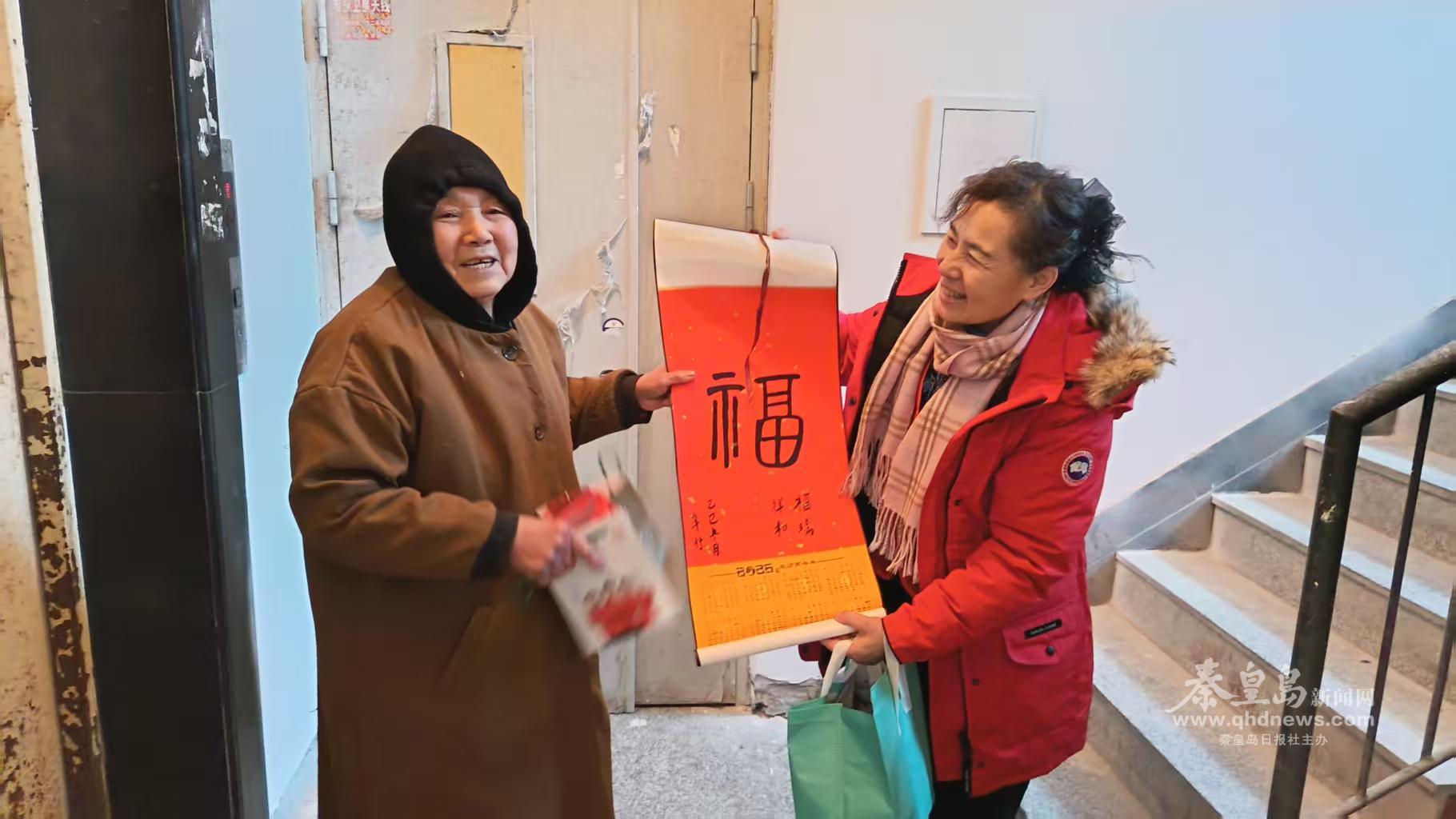 在軍安小區(qū)院內(nèi),年逾80的老黨員阿姨聽說志愿者來送八寶粥,在樓下等著志愿者。她是民政幫扶對象,黨支部先后招募了11位老中青幼四代志愿者接力,幫扶這位開朗善良的孤寡老人5年多,這次送粥給李阿姨準(zhǔn)備了春聯(lián)、年歷、餃子和日常的洗護(hù)用品,還了解李阿姨家庭生活及健康的需求。李阿姨說:你們總來幫助我看望我,讓我挺開心的,我天天在外面保護(hù)小動物也是鍛煉身體,不愛感冒生病啦。李阿姨說話的聲音特別爽朗,接過志愿者給她準(zhǔn)備了禮物,她開心的笑著。年逾70的退休軍人劉兆坤主動參加慰問活動,撰寫的春聯(lián)送給孤寡老人。