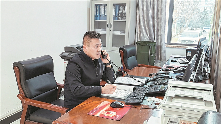 宣小樂(lè)在值班中記錄并處置電話信息。(圖片由市委值班室提供)