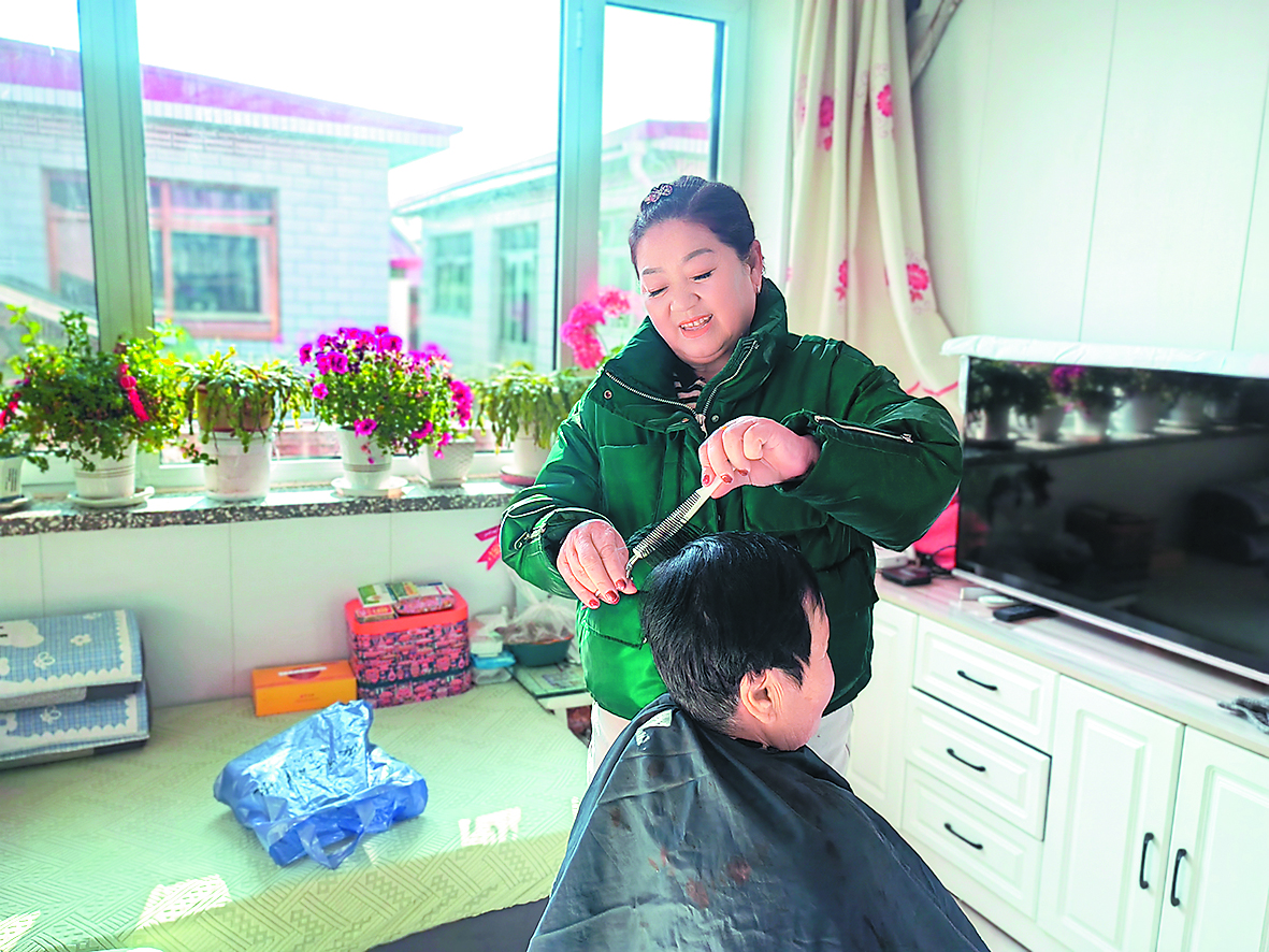 尹玉清為村里老人義務剪發(fā)。  (圖片由北戴河新區(qū)留守營管理處提供)