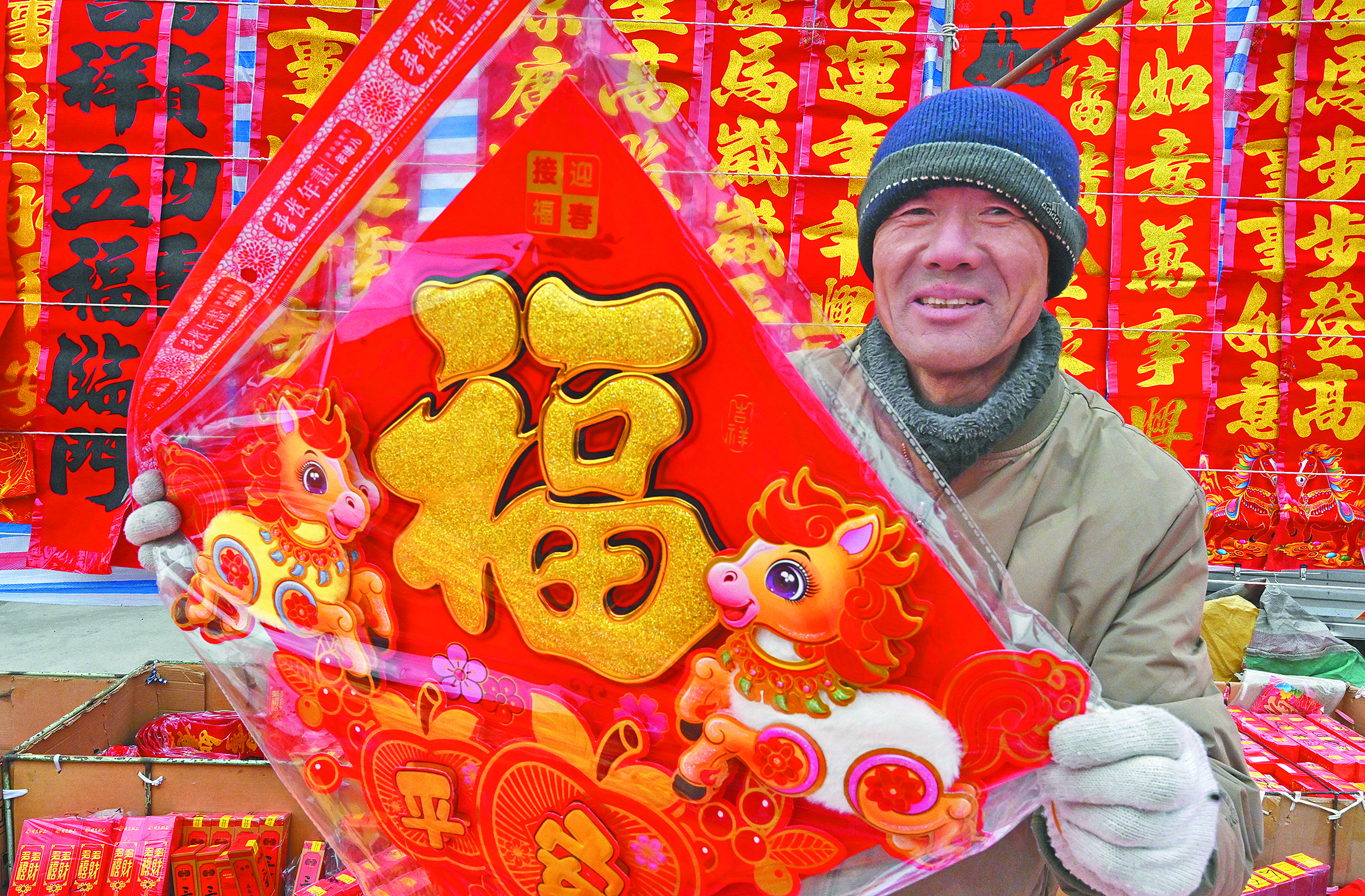 印著駿馬圖案的福字,滿是迎馬年的喜慶年味。