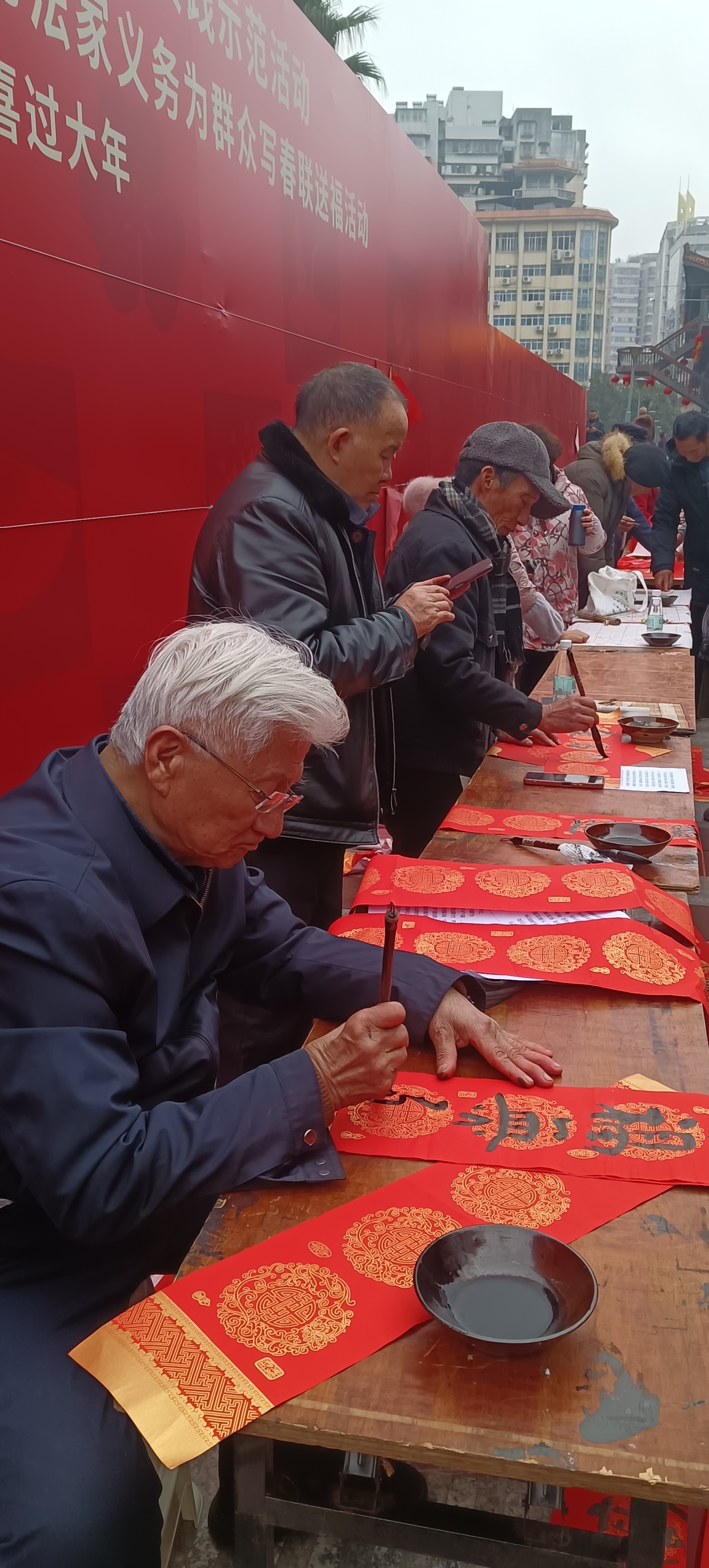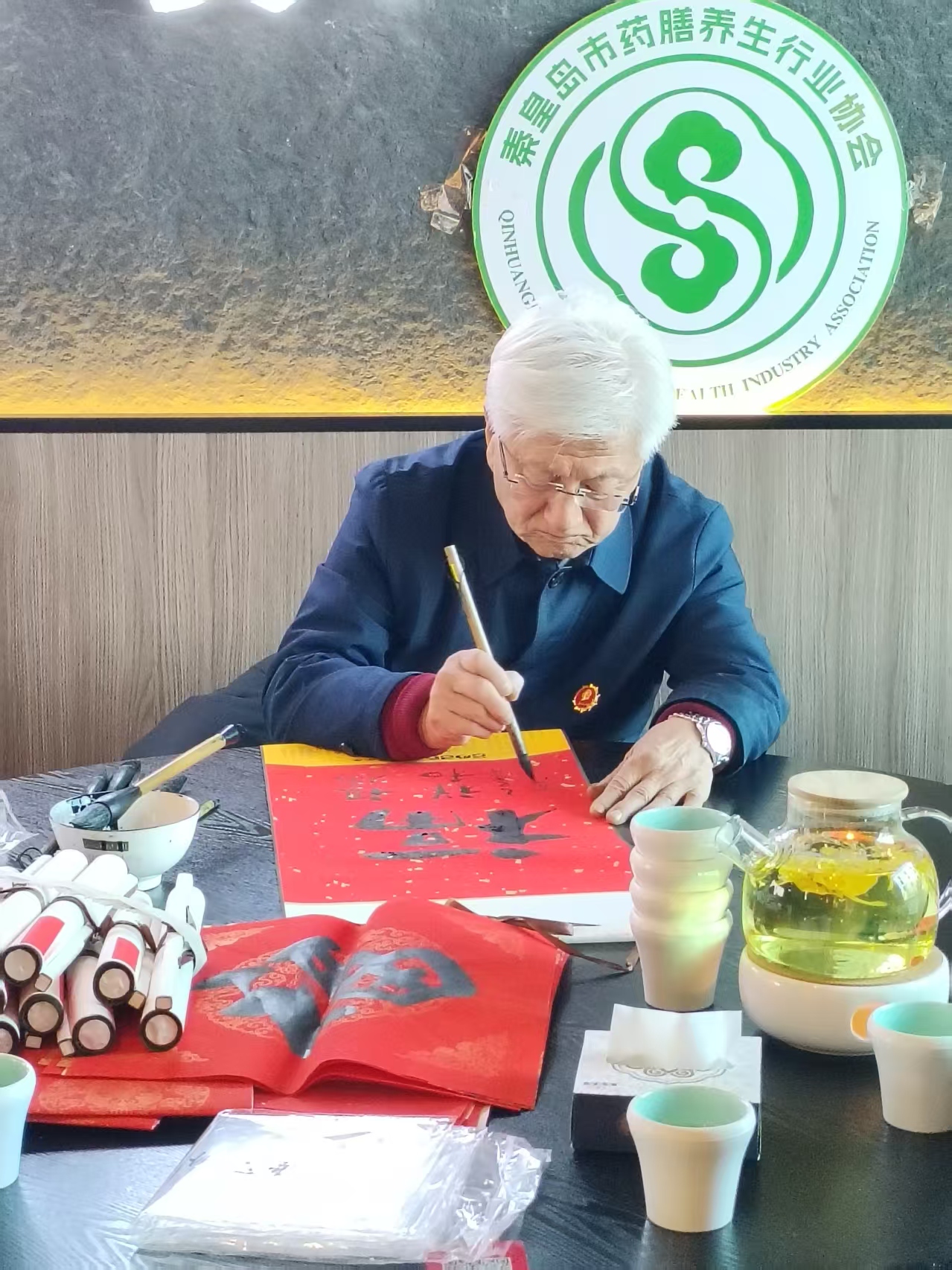 每逢迎春時(shí)節(jié),夏老師最忙,他參加了秦皇島市藥膳養(yǎng)生行業(yè)協(xié)會的銀齡志愿服務(wù)隊(duì),積極參加各種公益活動。去年暑期在北戴河歌華營地,為俄羅斯藝術(shù)團(tuán)的友人寫大字,傳承中華文化;在國慶節(jié)不同藝術(shù)街區(qū)市集上,夏老師于志愿者義賣墨寶書簽的收益轉(zhuǎn)化成重陽節(jié)的禮物慰問需要幫助的長者,感受到“送人玫瑰,手留余香”的獲得感。他自稱80后小伙,一個(gè)人獨(dú)居生活會有很多困難,但他非?;磉_(dá),總是調(diào)侃:節(jié)儉自在。在外地的兒子一入冬就要接他去南方過年,他一推二拖,就想著幫助社會組織多寫春聯(lián),冬至前,夏老師已經(jīng)提前為學(xué)校、社區(qū)、警營和社會組織書寫春聯(lián)、年歷和福字200多套。臘八節(jié),志愿者們墨香伴著粥香,飽含敬老助老銀齡情的春聯(lián)、福字送到孤寡老人手上。