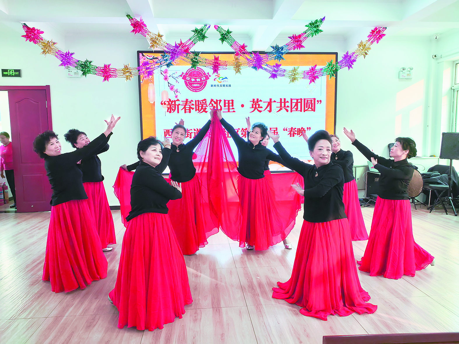 北戴河區(qū)西山街道居民在“百姓春晚”上載歌載舞。 (圖片由西山街道提供)