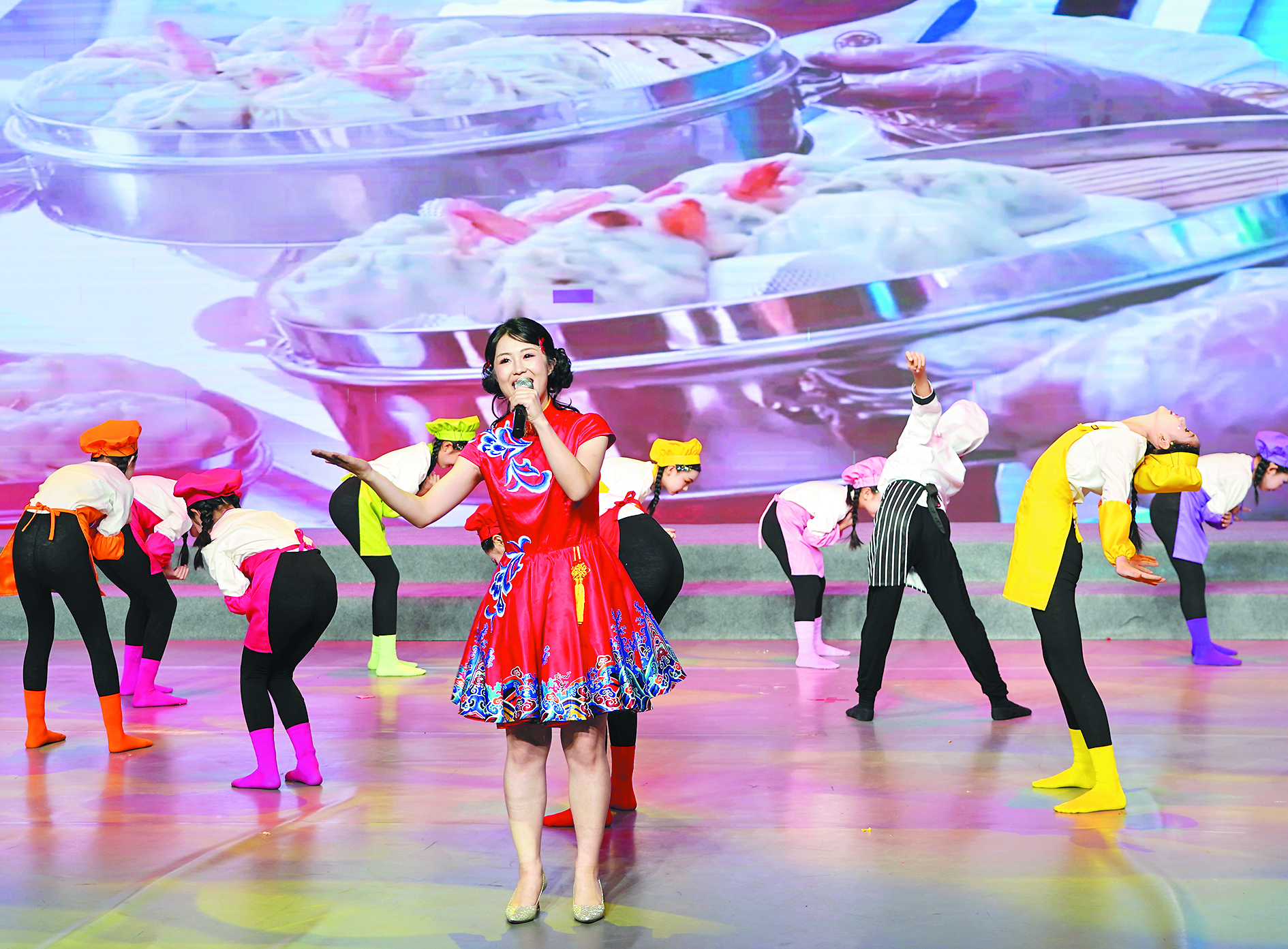 情景表演《“雙語(yǔ)”星推薦官》里,游子們的鄉(xiāng)音與普通話交織,笨拙而真摯地拼湊出故鄉(xiāng)的輪廓,那是山海關(guān)的巍峨,也是鴿子窩的輕柔。當(dāng)《想把我唱給你聽(tīng)》《月亮照山川》等經(jīng)典老歌接連響起,時(shí)光仿佛被鍍上一層柔光。那些熟悉的旋律,以“歲月”為名,敬頌著此間山海不變的深情。詩(shī)朗誦《讀長(zhǎng)城》則讓聲音有了磚石的重量,一字一句,壘起的是穿越千年的風(fēng)骨與滄桑?!逗ur大餡》的活潑旋律,則為舞臺(tái)瞬間注入市井的活力,唱的是餐桌上的尋常滋味,也是日子里的踏實(shí)與豐足。