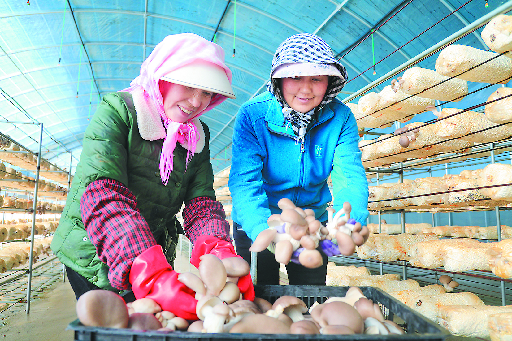 博湖縣村民在“秦博江河”食用菌企業(yè)就近務(wù)工。