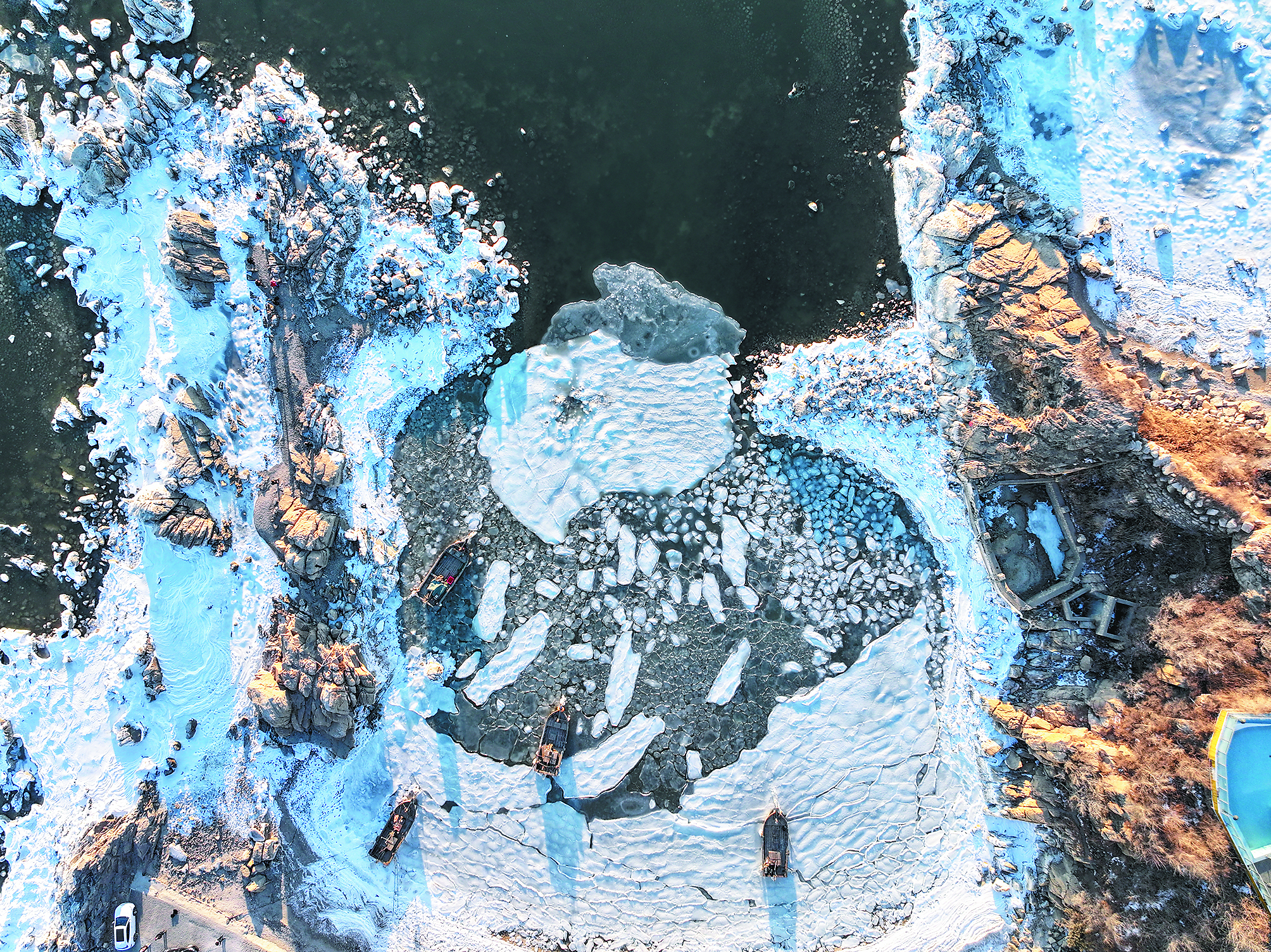 老龍頭景區(qū)附近海域的“荷葉冰”令人嘆為觀止。周紅 攝