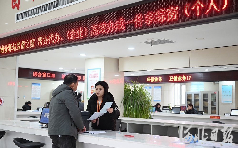 2月27日,平鄉(xiāng)縣政務(wù)服務(wù)大廳“高效辦成一件事”專區(qū)工作人員在為群眾辦理相關(guān)業(yè)務(wù)。河北日?qǐng)?bào)記者 趙永輝 攝