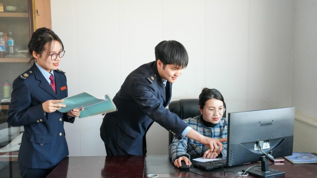 國家稅務(wù)總局曲陽縣稅務(wù)局工作人員向眾友自動化設(shè)備有限公司財(cái)務(wù)負(fù)責(zé)人講解研發(fā)費(fèi)用加計(jì)扣除政策。