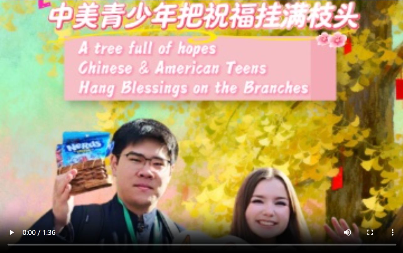 一張卡片 一樹心愿 中美青少年把祝福掛滿枝頭